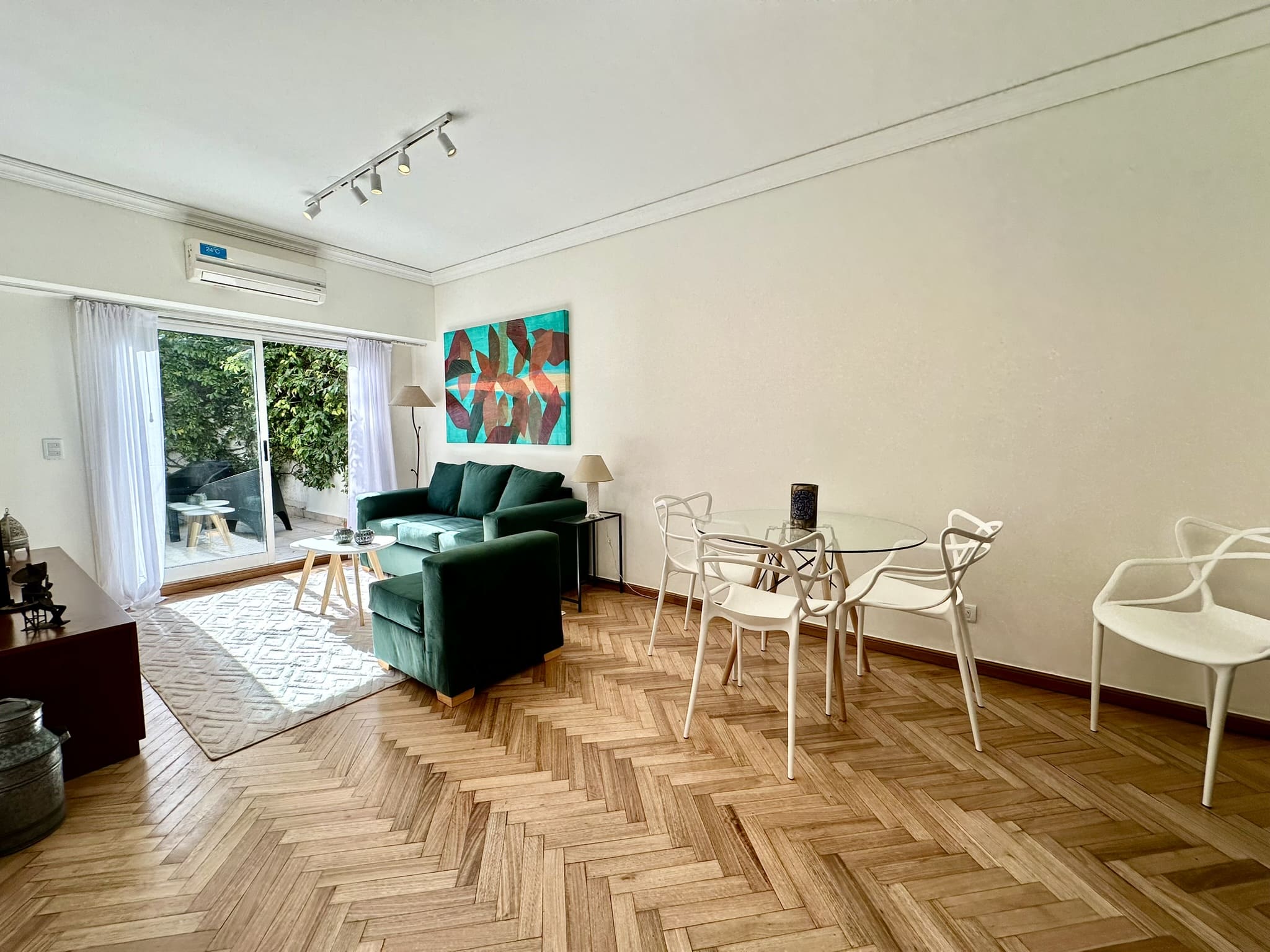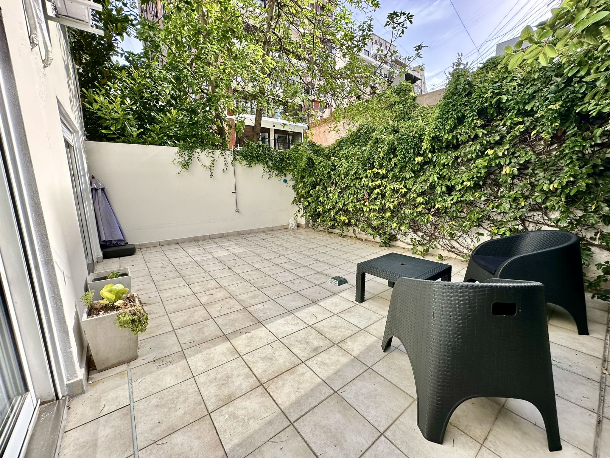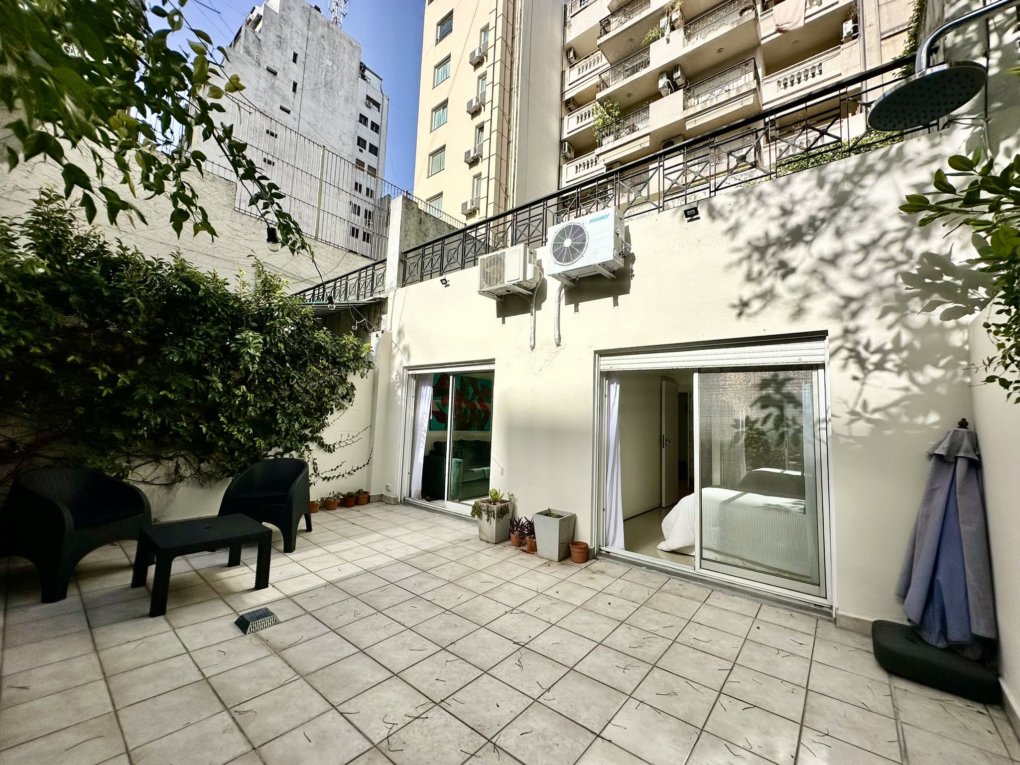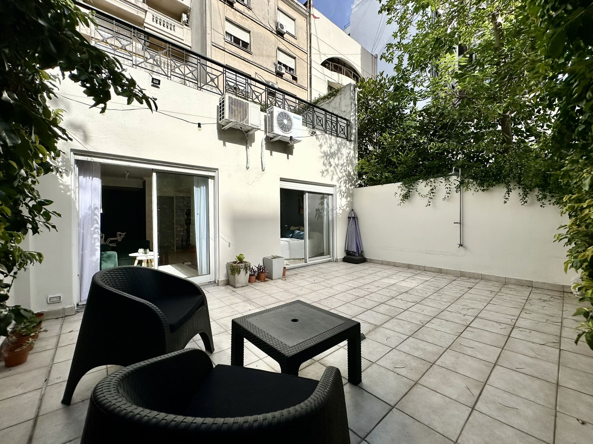Espectacular departamento de 2 ambientes, con gran patio/terraza propio rodeado de verde en Libertad y Av Santa Fé. Reciclado completamente a nuevo, y totalmente equipado y decorado con extraordinario buen gusto!!