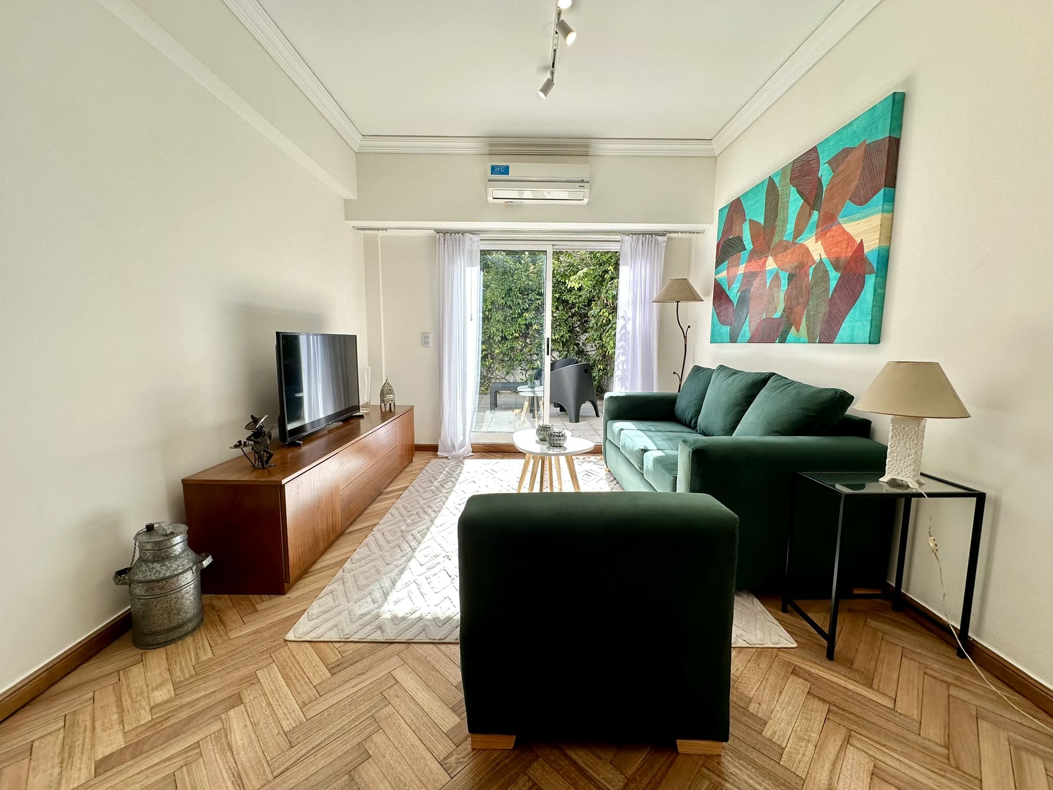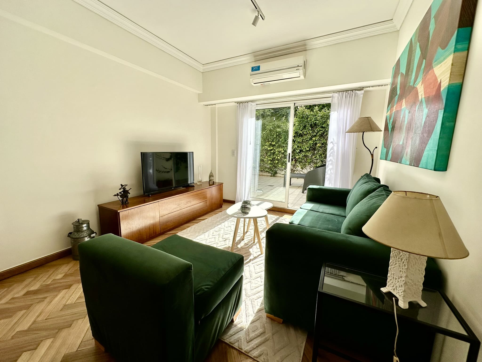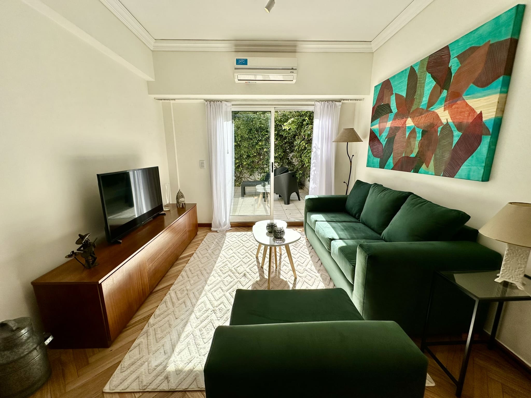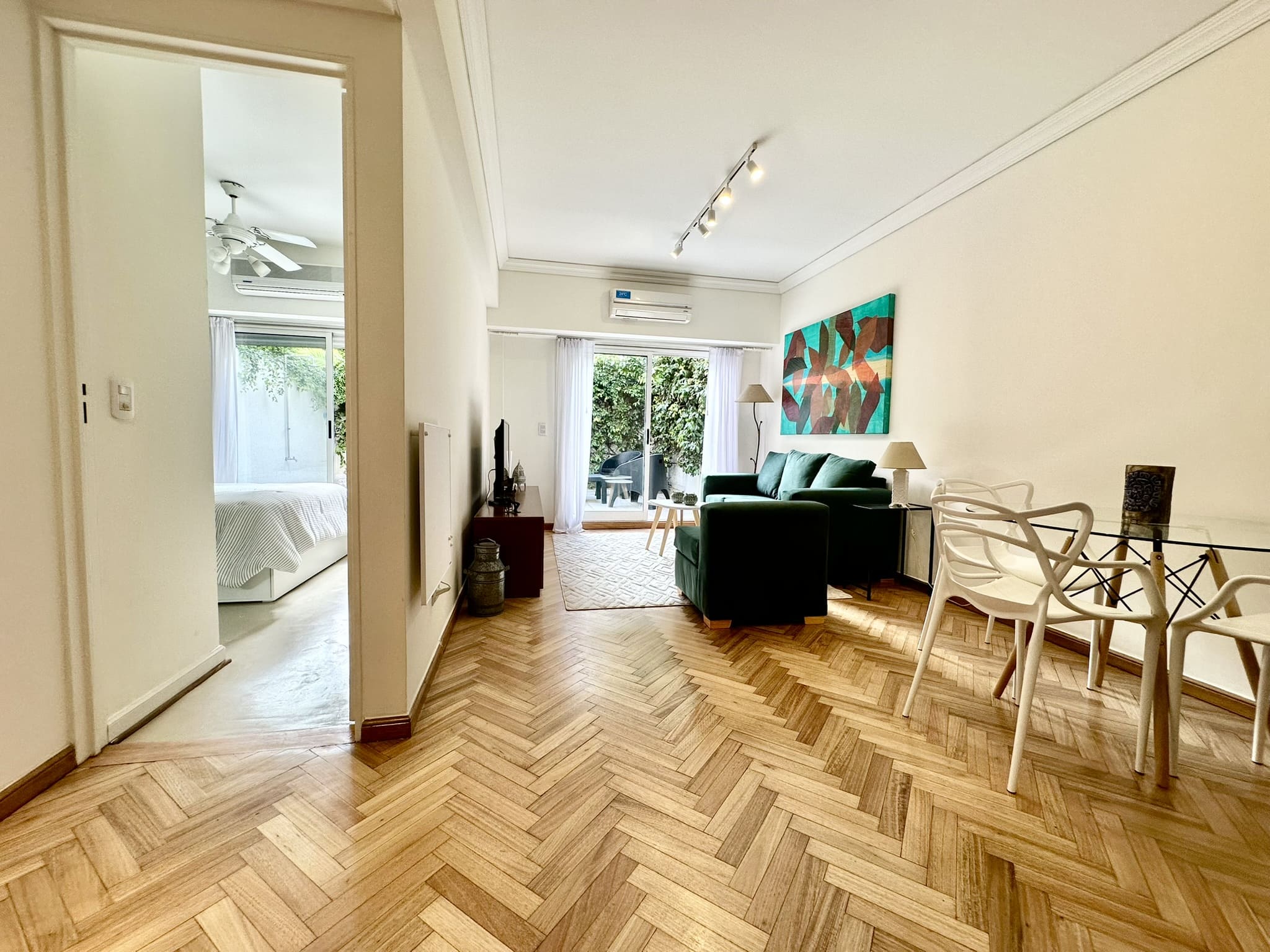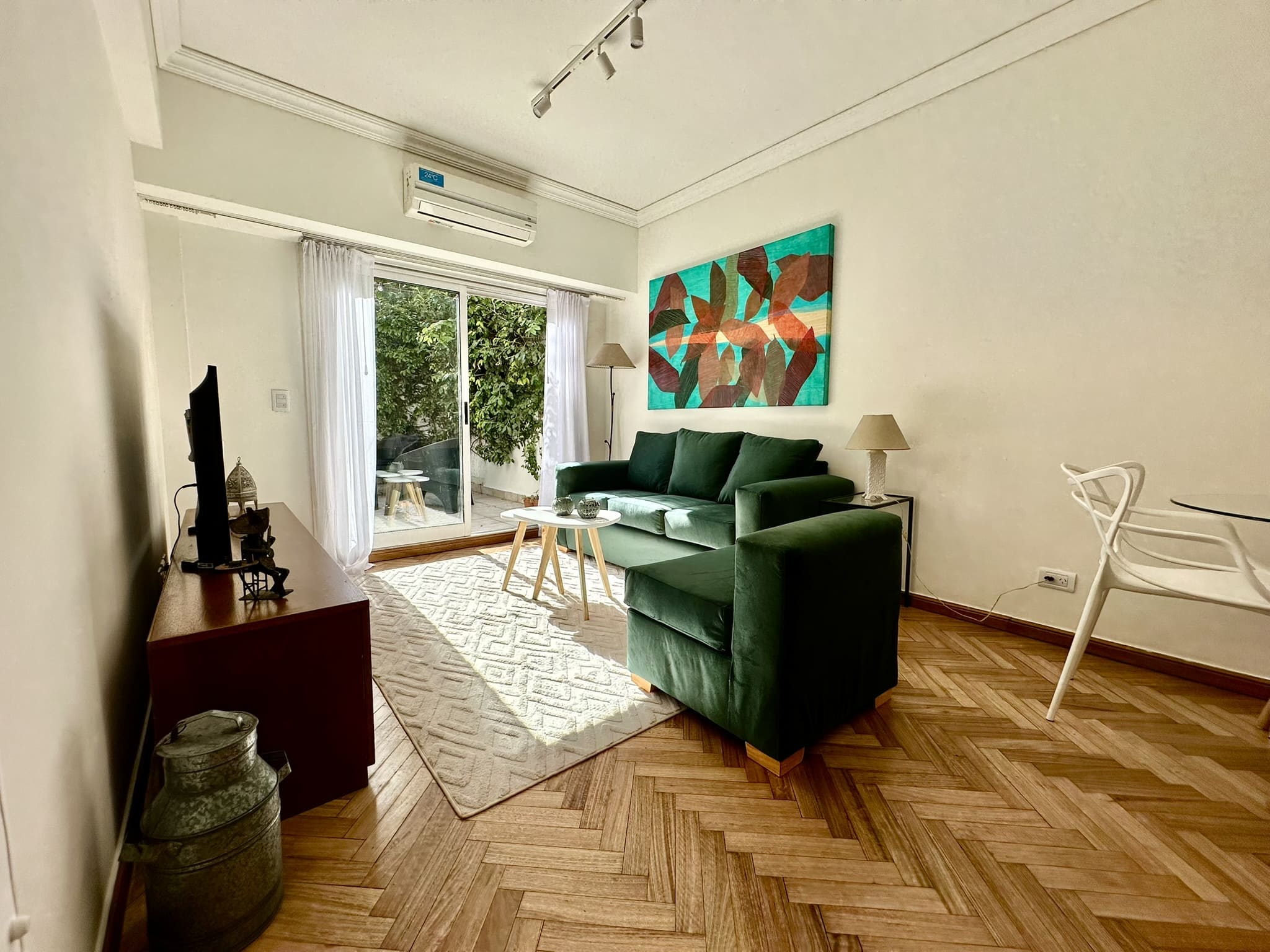 Espectacular departamento de 2 ambientes, con gran patio/terraza propio rodeado de verde en Libertad y Av Santa Fé. Reciclado completamente a nuevo, y totalmente equipado y decorado con extraordinario buen gusto!!